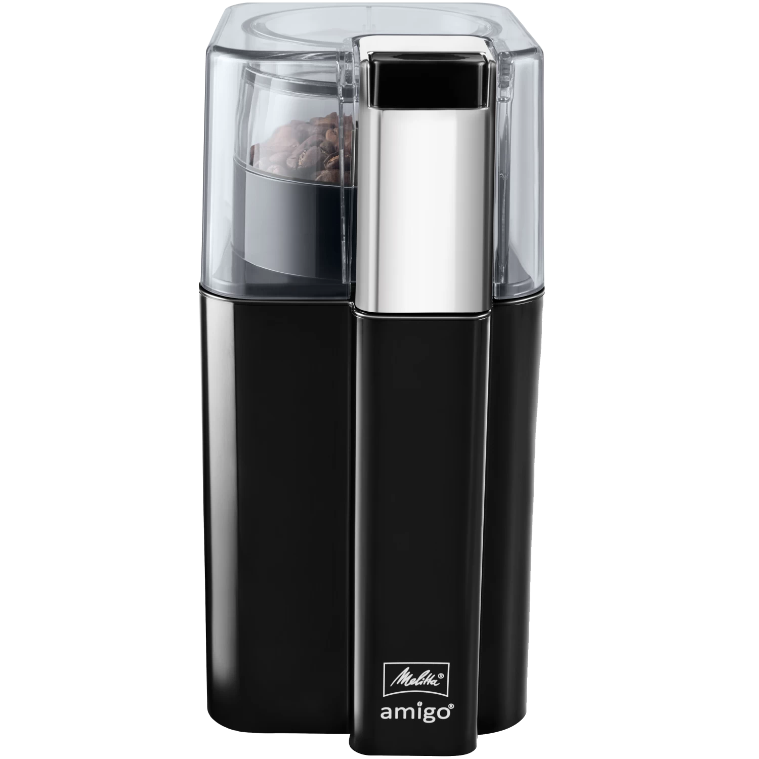 Unsere elektrische Kaffeemühle Melitta® amigo® mit einem Fassungsvermögen von 60 Gramm, zwei hochwertigen Schlagmessern aus Edelstahl und einer einfachen Bedienung garantiert frischen Genuss in jeder Tasse. Der Mahlvorgang wird durch die Dauer des Tastendrucks gesteuert, wodurch du den Mahlgrad individuell für verschiedene Zubereitungsarten bestimmen kannst. Frisch gemahlen – für deinen aromatischen Kaffeegenussmoment.