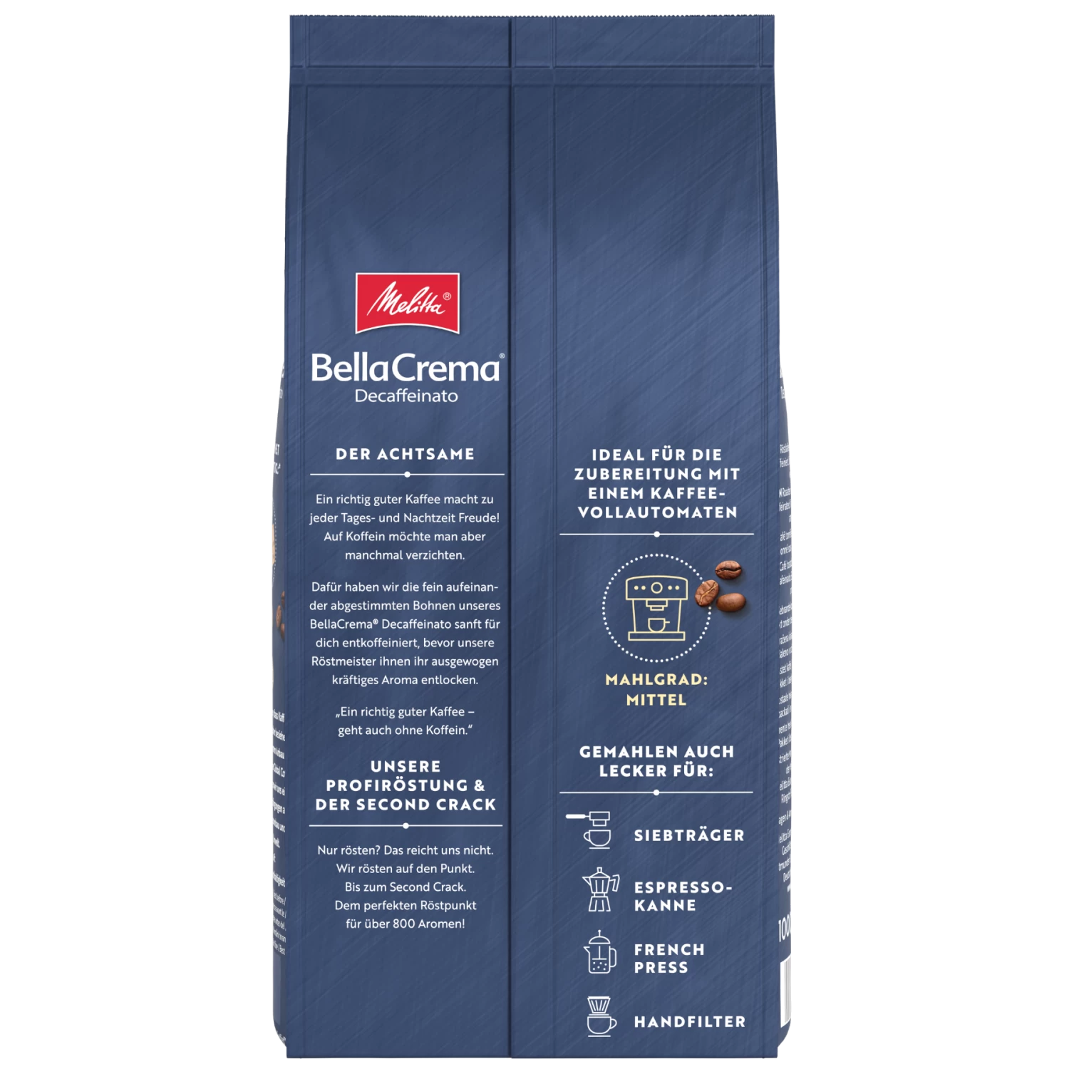 Du möchtest auf Koffein verzichten, auf keinen Fall aber auf guten Kaffee? Kein Problem mit unserem BellaCrema® Decaffeinato! Italienisch-intensiver Kaffeegeschmack mit einer leichten Süße und Fruchtigkeit und das ganz ohne Koffein. Perfekt für die Tasse Kaffee am Abend und für alle, die auf Koffein verzichten möchten.