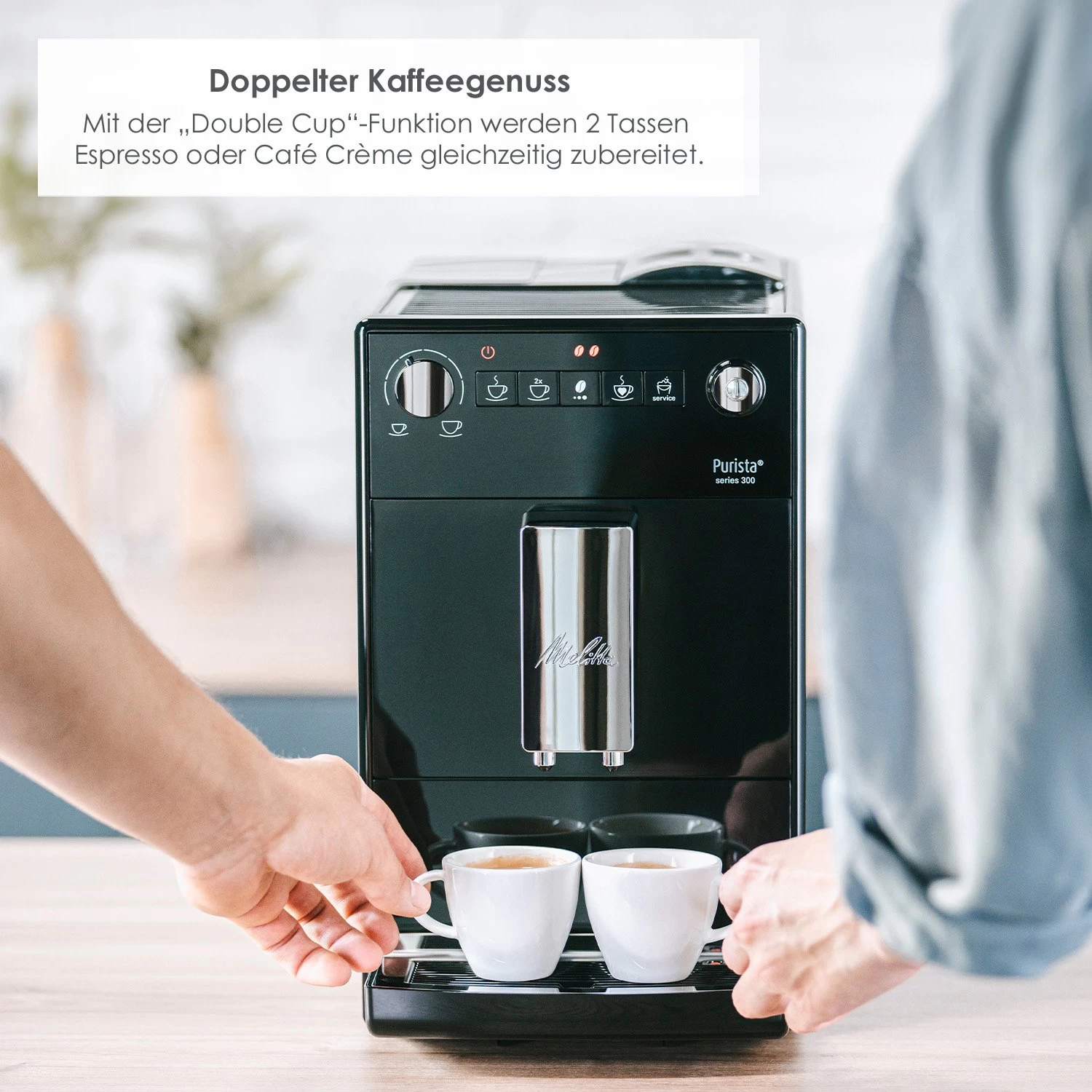 Die Melitta® Purista® konzentriert sich auf das Wesentliche: puren, aromatischen Kaffeegenuss. Unsere Pumpensteuerung sorgt für eine optimale Entfaltung der Kaffeearomen und ausgezeichneten Geschmack. Dein individuelles Lieblingsrezept kannst du über die Lieblingskaffee-Funktion abspeichern und direkt beziehen. Die Kaffee-Klassiker sowie die Kaffeestärke lassen sich ganz einfach über die Direktbezugstasten auswählen. Auch wenn die Melitta® Purista® nur 20 cm breit ist, überzeugt sie – mit erstklassiger Melitta® Technologie und größtem Geschmack.