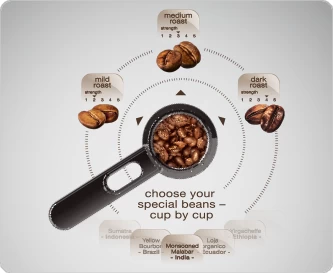 Die Melitta® Varianza® CSP steht für Individualität wie kein anderer Kaffeevollautomat. Die gängigsten Kaffeespezialitäten lassen sich bequem über die Direktbezugstasten auswählen und über die Menüführung können sechs weitere Kaffeerezepte, wie zum Beispiel Ristretto, Lungo und Espresso macchiato, zubereitet werden. Neben dem klassischen Bohnenbehälter verfügt die Varianza® CSP über einen zusätzlichen Füllschacht – die „My Bean Select®“-Funktion – und ermöglicht so die Verwendung einer anderen Bohnensorte bei jeder Tasse – für grenzenlose Kaffeevielfalt.